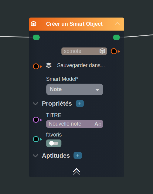Les smartflows sont des workflows dédiés au traitement de la donnée. Ils ne génèrent pas d'interface graphique et ont des noeuds spécifiques de connexion API, base de données et FTP.