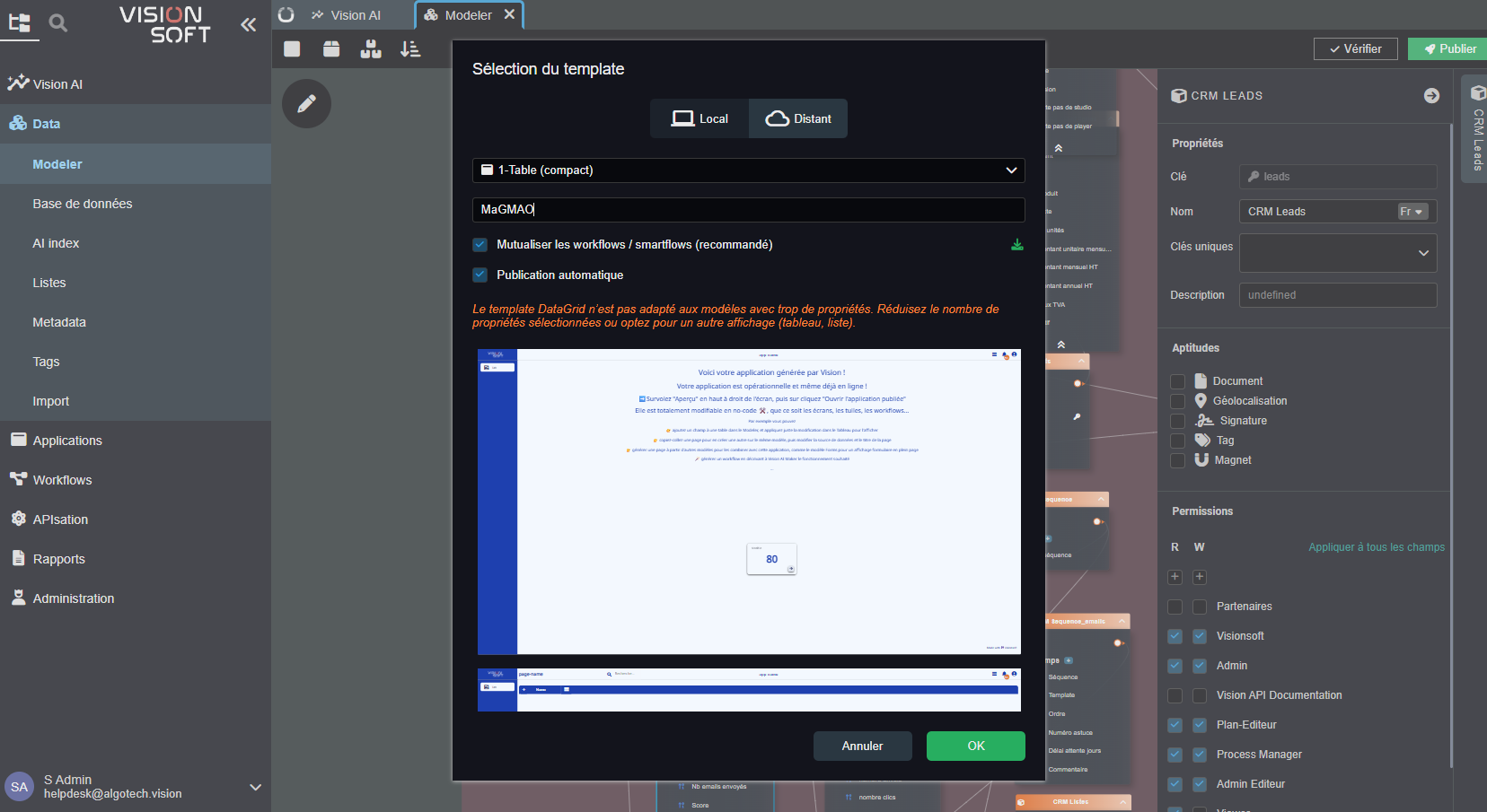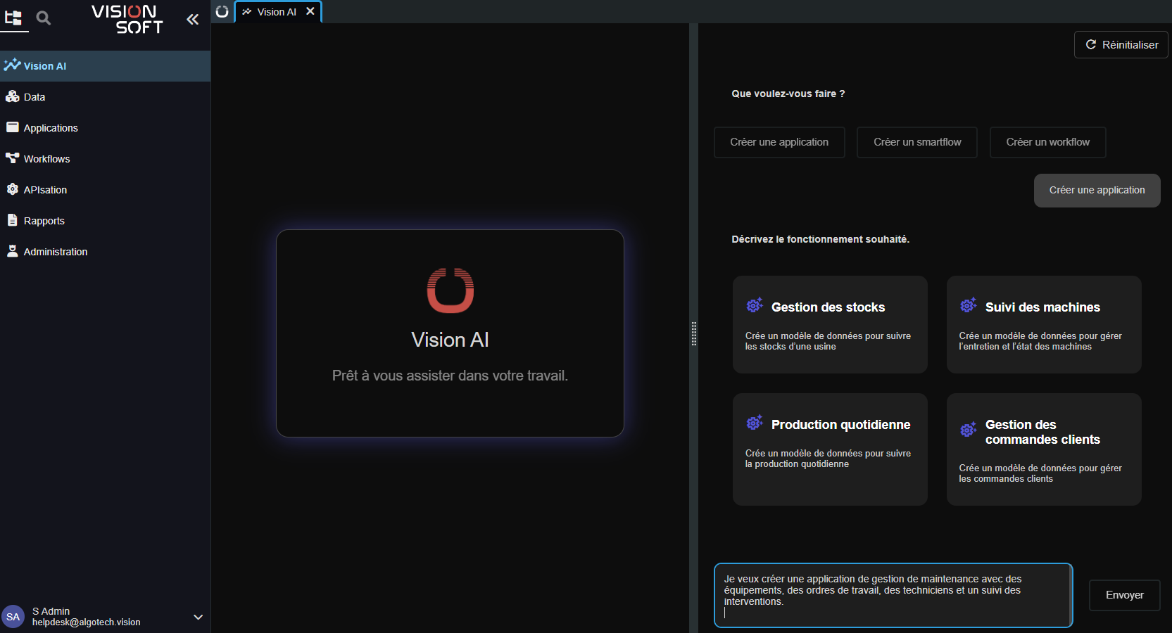 Visionsoft Studio intègre également un AI Maker, une IA qui génére du no-code, conçu pour accélérer la création de vos applications.